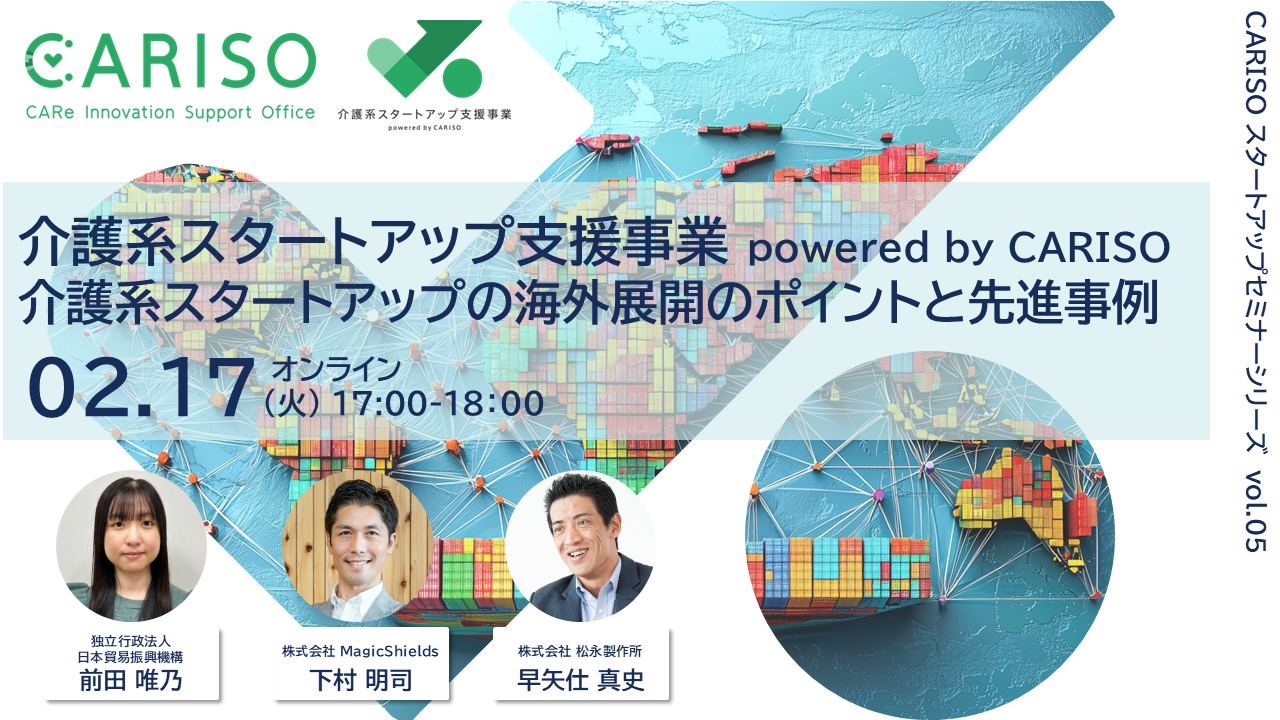 2026.01.20CARISOスタートアップセミナーシリーズ vol.05:介護系スタートアップの海外展開のポイントと先進事例